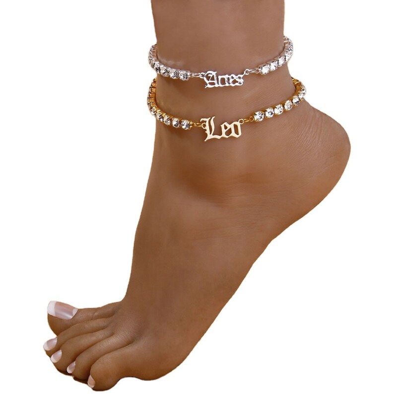 Classic Ankle Bracelet Full Diamond Tennis Chain Zodiac Sign |Tennis Bracelet | Zodiac Sign Chain | Christmas Gift |Diamond Anklet for Women